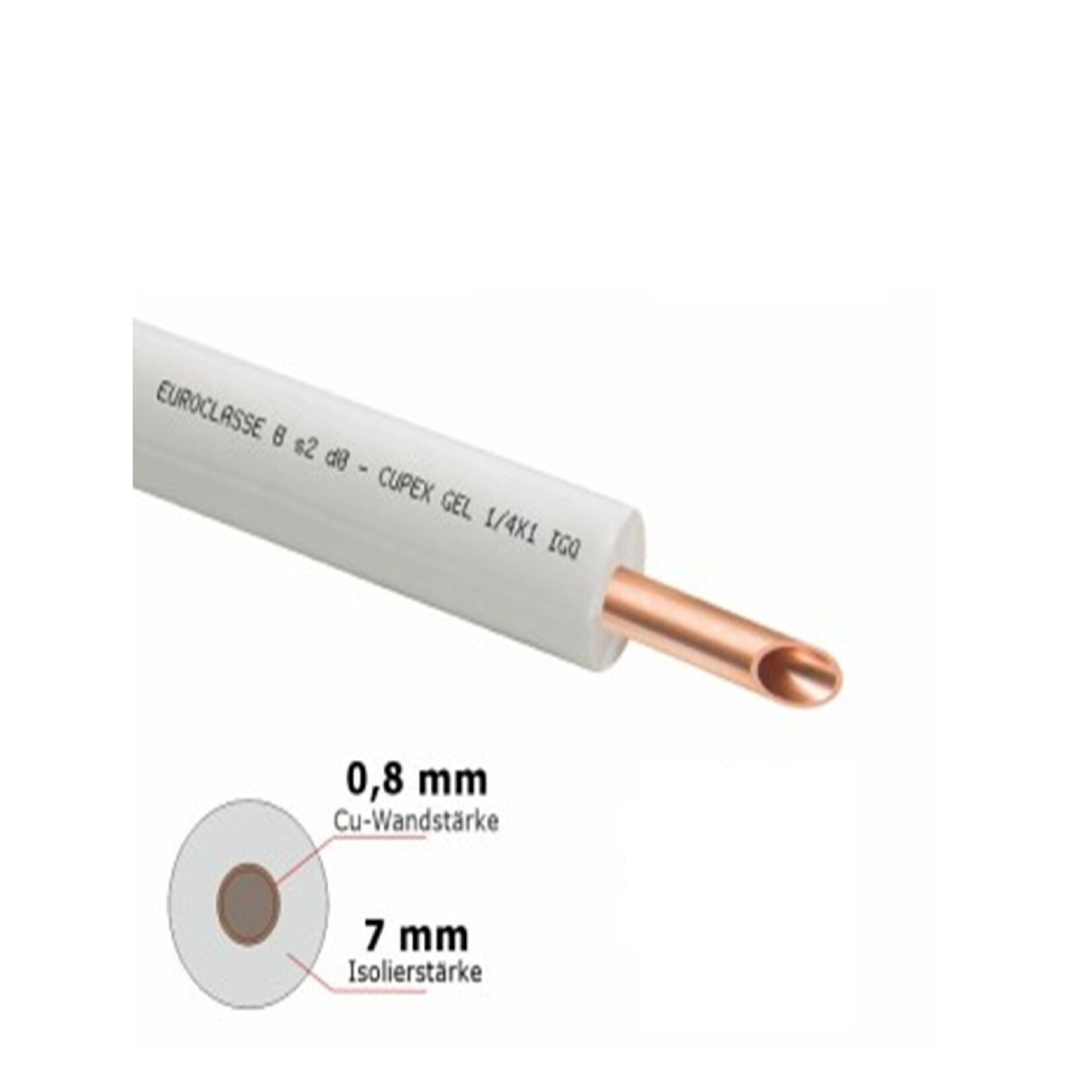 Vorisoliertes Kupferrohr , Zöllige Ausführung0,8 mm Wandstärke6 mm Isolierung